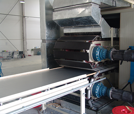 擁有國內(nèi)從歐洲全套引進(jìn)的柔性面材夾芯板連續(xù)生產(chǎn)線兩條。